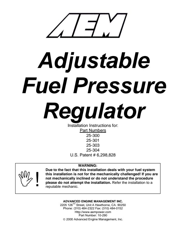 - Adjustable from 20 psi to maximum fuel pump capacity