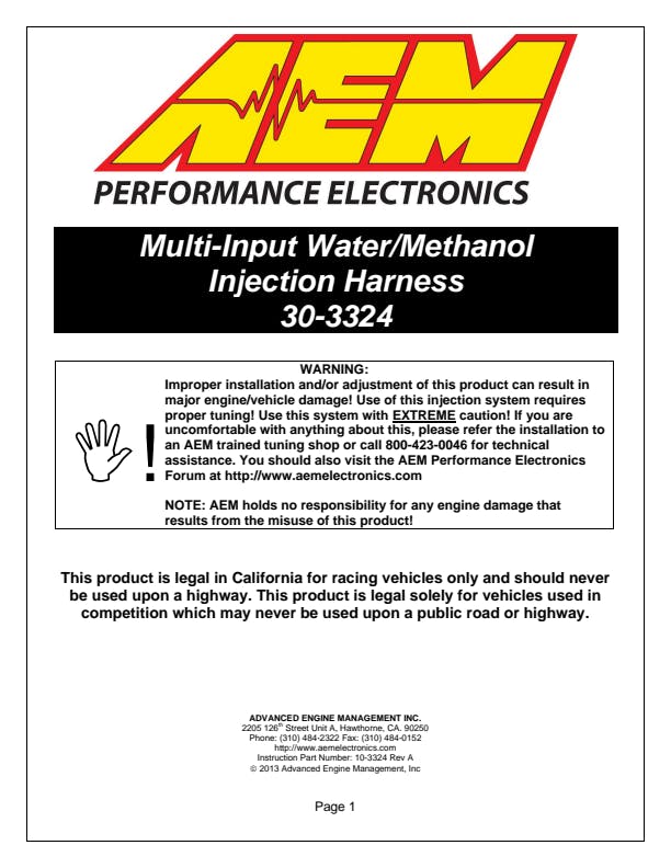 Plug and Play replacement harness for our multi-input Water/Methanol controller.