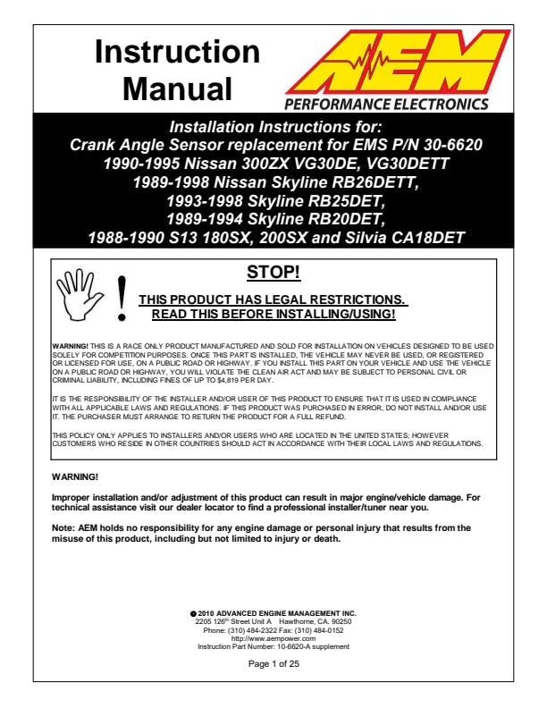 AEM cam angle sensor discs are for use with AEM programmable engine management systems They are a direct replacement for the factory crank angle sensor disc in your Nissan. Before purchasing the 24 Nissan CAS sensor, be sure that the center of the AEM CAS disc looks exactly like the stock disc in your distributor. Be sure to match the hubs of your disc to the AEM Nissan CAS sensor disc before ordering.