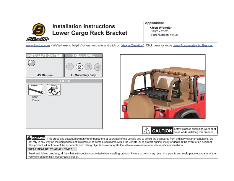 Take storage to the next level with a Bestop Modular Rack System. The Lower Cargo Bracket System uses your sport bars for secure, solid mounting with two descending arms that suspend the Universal Tray over the cargo area. Keeps stored items in the tray within the interior of the Wrangler for reduced wind buffeting and easier access.