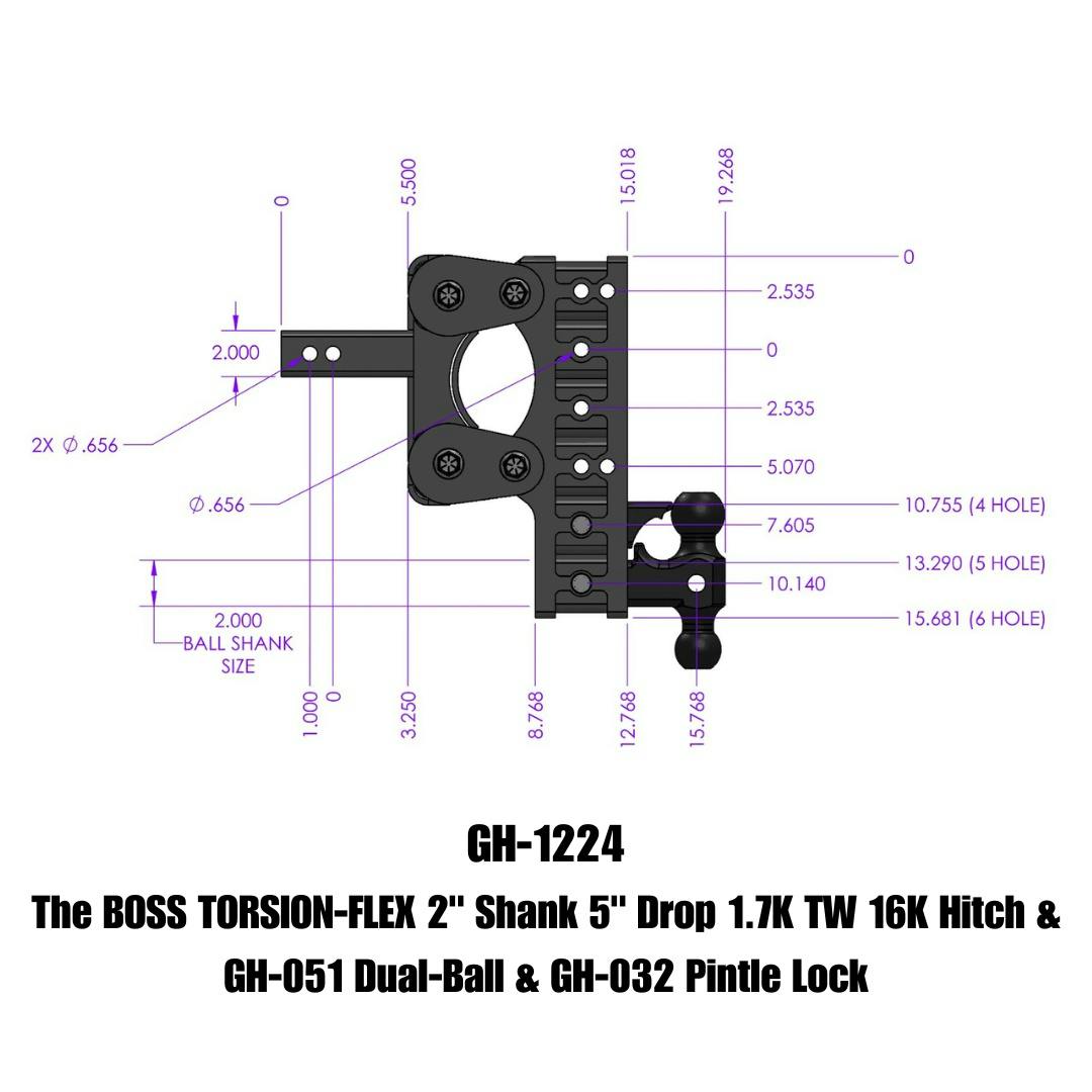The BOSS TORSION-FLEX 2" Shank 5" Drop 1.7K TW 16K Hitch & GH-051 Dual-Ball & GH-032 Pintle Lock