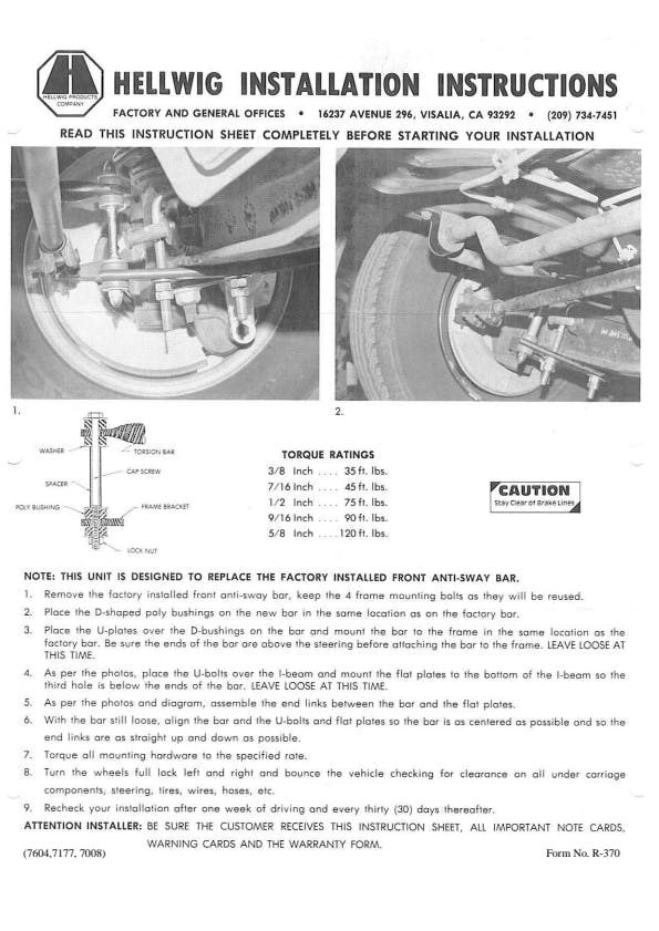 For your money, the best aftermarket investment you can make! Hellwig Sway Bars are an extremely effective handling upgrade you can make to your vehicle. Hellwig sway bars offer quick bolt on installation that are engineered to perform. An immediate improvement will be felt when you drive through the first corner with a Hellwig sway bar installed. Though most vehicles come equipped with factory installed sway bars, they are often insufficient for today?sload and tow demands. Hellwig sway bars feature larger than stock diameters and precision engineered components to optimize handling and reduce body roll.