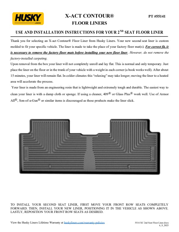 Nothing fits your vehicle better or protects longer than Husky X-act Contour?. These liners combine laser-scanned, exact fit with a no-slip, DuraGrip? surface and a softer feel. Plus, the rock-solid stability delivered by your vehicle?s factory retention posts, and our StayPut? Nibs for a no-slip, no-slide, surface with absolutely zero compromise in protection. They?re built to stand up to whatever you?re laying down? including chemicals like battery acid and oil, with our FormFit Edge? to keep whatever spills contained for easy cleanup. Available in black. Built for a lifetime of rugged abuse, warrantees the same.