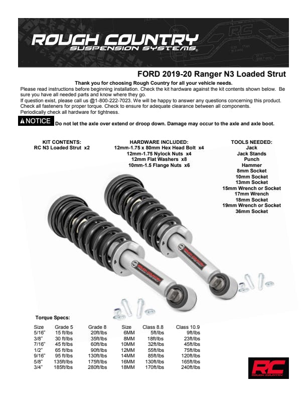 Do you want a great looking lifted truck that still rides like the day you bought it? Take your truck to new heights while preserving ride quality with Rough Country's N3 Performance Lifted Struts. Our Nitrogen charged, loaded struts add ride height to your truck while maintaining a smooth, factory-like ride. Each strut includes a pre-loaded coil for lightning-fast installation without the need for complicated strut disassembly. Rough Country's Performance N3 Struts feature a massive bore and chrome-hardened piston rod with leak-proof piston seal for exceptional durability during off-road use. Each strut is specifically tuned for its intended application and includes a variable dampening system for outstanding handling and control on all road conditions. These Performance N3 Struts offer improved tire contact with the road for increased stability and performance. These struts are engineered to fit perfectly on each intended application, and feature a pre-installed coil spring for easy installation without the need for strut disassembly. Simply remove your factory strut and replace with this easy, convenient system. The result is an increased ride height that mimics the factory responsiveness and handling of the OE strut. Includes a 3-year Limited Warranty.