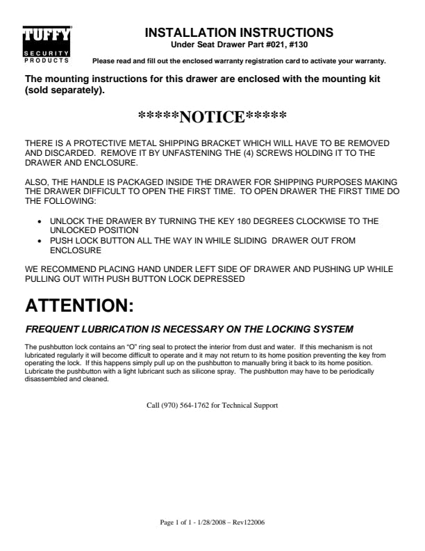 - Patented Pry-Guard II locking system with a 1/4 inch steel latch which enables the drawer to be latched closed without locking