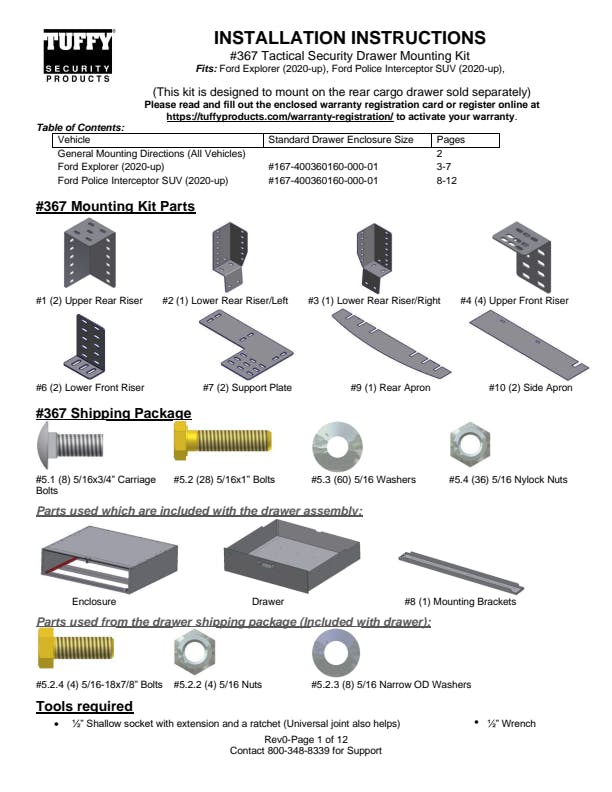Police Interceptor SUV Mounting Kit. This kit is necessary to mount the security drawer in a 2020 to current model year Ford Police Interceptor and Ford Explorer SUV. Mounted to points and pan inside spare tire storage area. Access still provided for jack and spare tire.