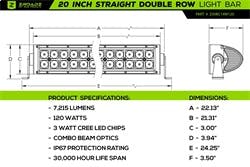 - Incl. [1] 20 Inch ZROADZ LED Straight Double Row Light Bar