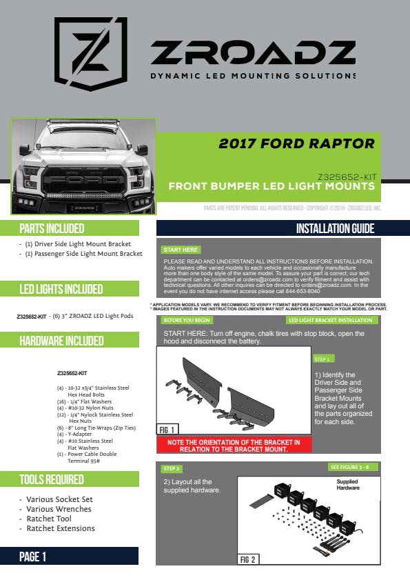 ZROADZ Front Bumper LED Mounts and kits are a quick and easy way to add forward facing lighting to your vehicle. The simple bolt on installation uses factory bolt locations and provides significant auxiliary lighting. Typical installation time is under 30 minutes and can be successfully installed using common hand tools by even the most casual enthusiast. ZROADZ Front Bumper LED Mounts are available in complete kits with light and wiring harness, or as brackets only for mounting common and popular LED light bars. ZROADZ Front Bumper LED Mounts are designed and made in USA.